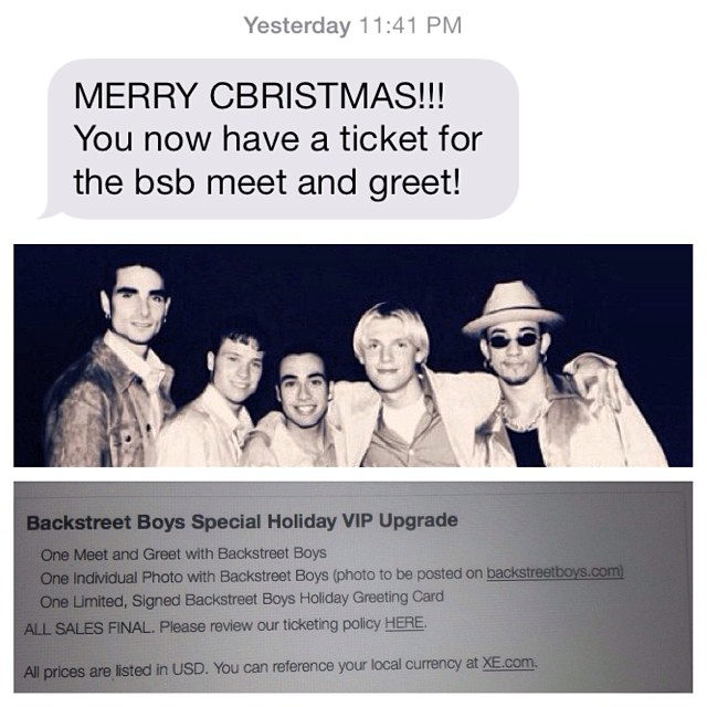 I've been in love with the Backstreet Boys since I was six years old. That's 20 years people! I've been to five of their concerts plus two concerts where it was just my favorite, Nick Carter. Oh, and I finally got to meet and hug all of them in December 2013 at my sister's school concert!